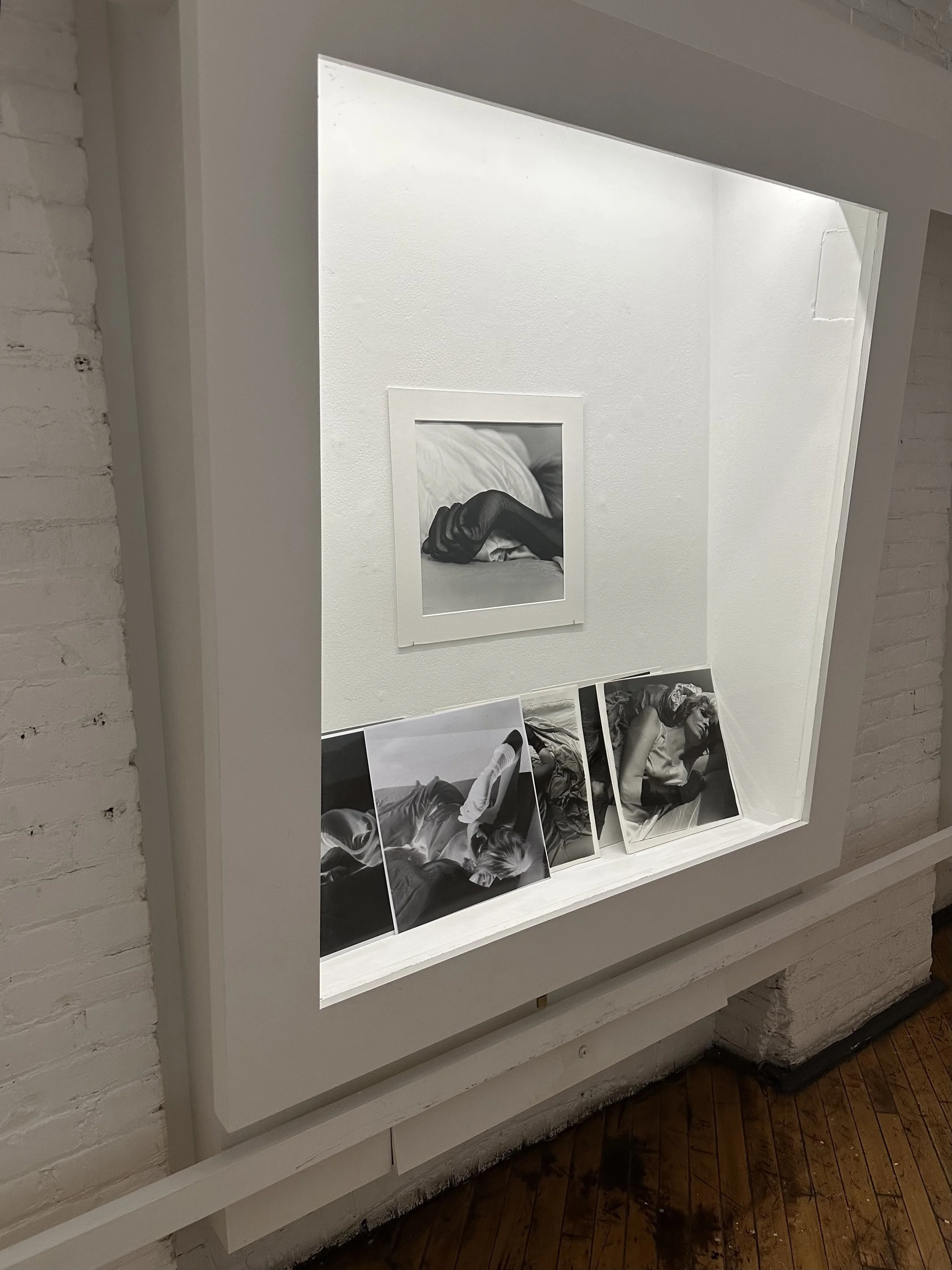 A photo series titled “ Double Negative “ is on display in the Gallery 44 vitrines from November 28 2025 - January 31 2026. The series was developed as part of my residency period at Gallery 44, during which I documented a new performance work using medium format analogue film photography. I utilized the Gallery 44 dark room to print the photographs exhibited in this series. Double Negative explores visual access points to my performance, staged in a gallery setting, with both the documentation and embodiment key components of my artistic research.